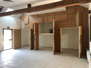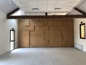 Structure porteuse avec isolation phonique renforcée. Panneaux de parement stratifiés avec perforations acoustiques.